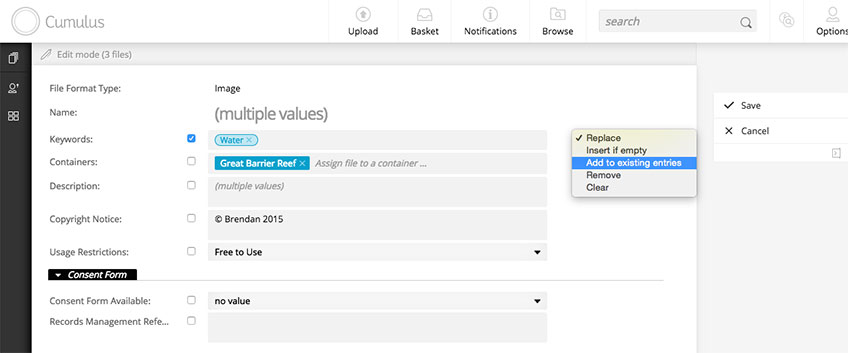 A new window will open where you can choose what metadata or information you would like to edit for the selected files. From the drop-down list select what you would like to do with the new information (or you can remove existing information).