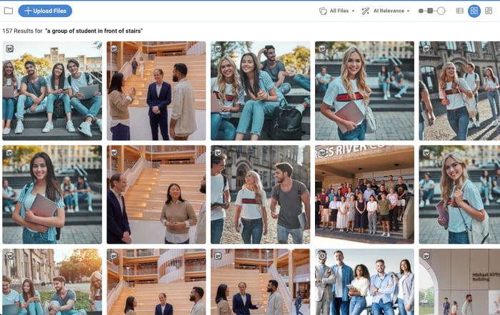 Scenario 1: You’re searching for images of “a group of students in front of stairs”. AI Visual Search can effortlessly retrieve all relevant images featuring groups of students in this specific setting.