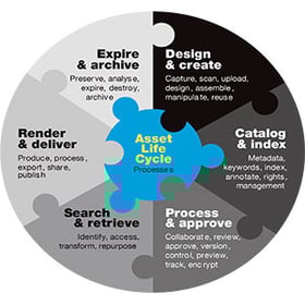 asset_lifecycleManaging the life cycle of a digital asset is as important as managing that of a physical asset, or any other item of value in government.  Michael Moon, GISTICS CEO,  in his article Activity lifecycle of digital assets,  details all the many and often repeated steps required for asset creation, use, management, distribution, re-use and archiving.  “DAM means digital workflows” he writes, and asks: “What makes a digital file an asset? A simple question with a deceptively simple answer –  findability and re-usability.”