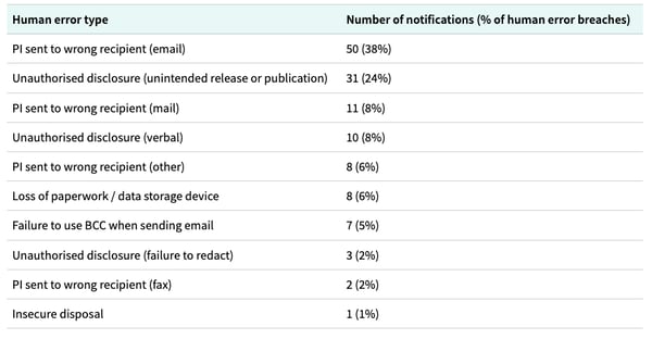 Human error caused data breach from July 2023 - Dec 2023. Source: https://www.oaic.gov.au/