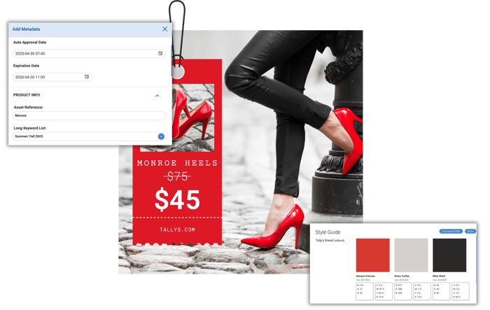 Govern brand guidelines, templates and usage rights from one hub to keep every channel—from TikTok to shelf talkers—visually aligned.