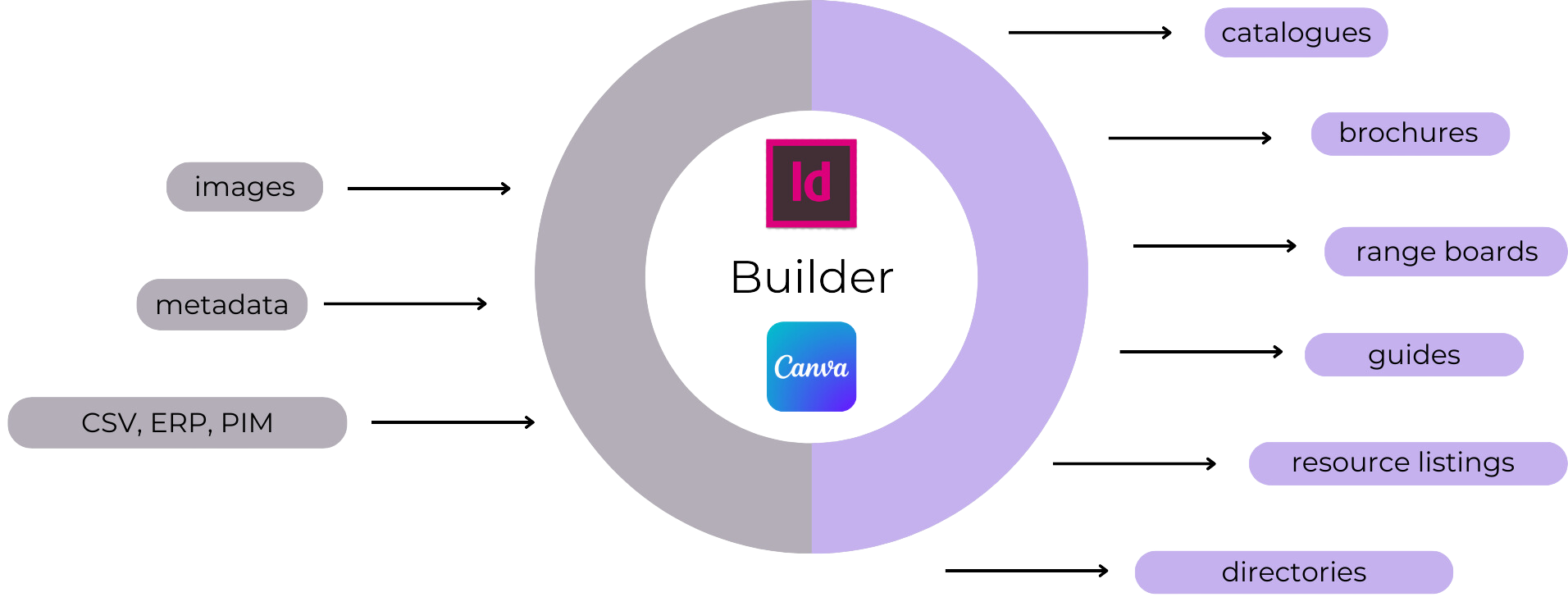 Builder plugin for InDesign and Canva helps turn your vast libraries of images and data into relevant digital communication. Quickly, accurately and cost-effectively.